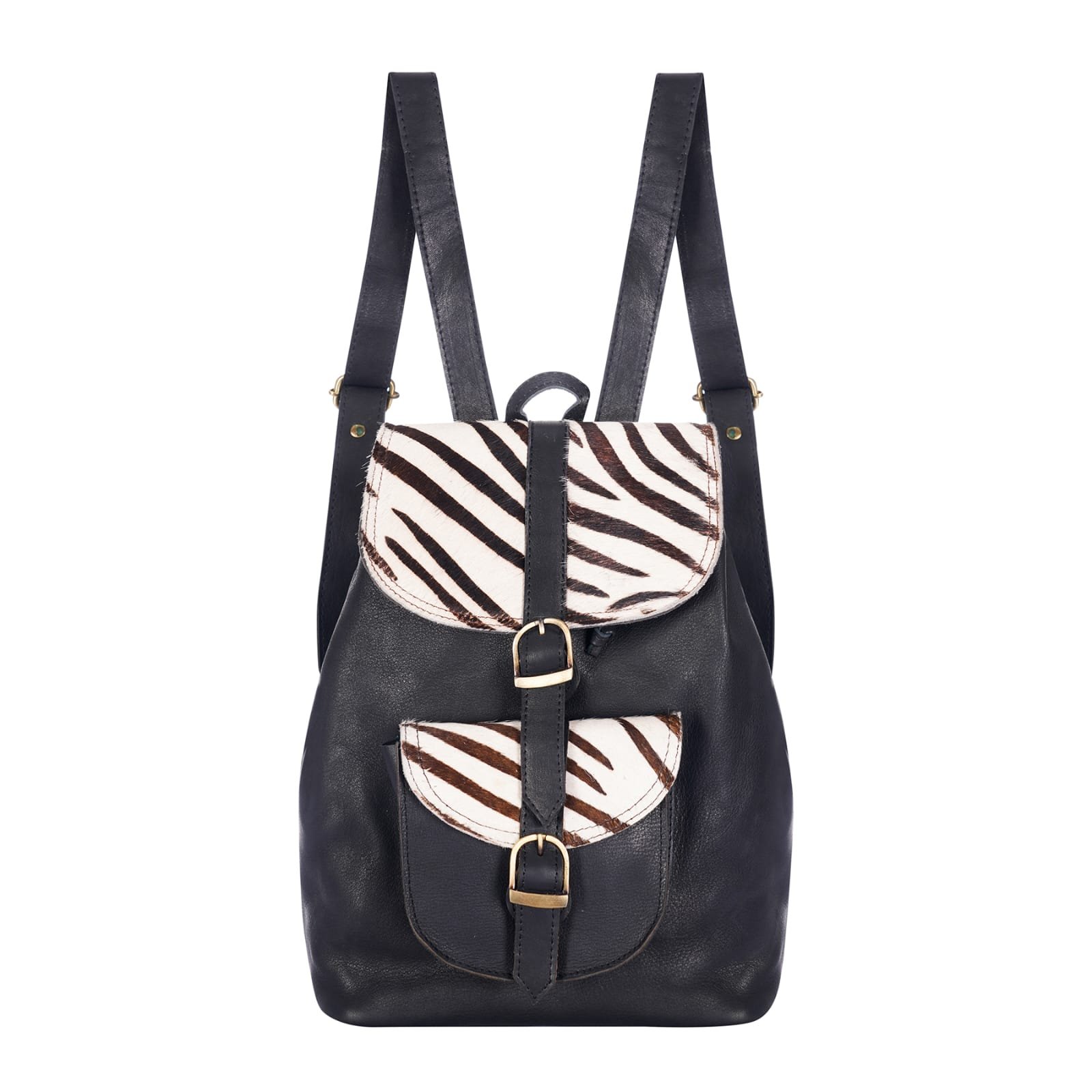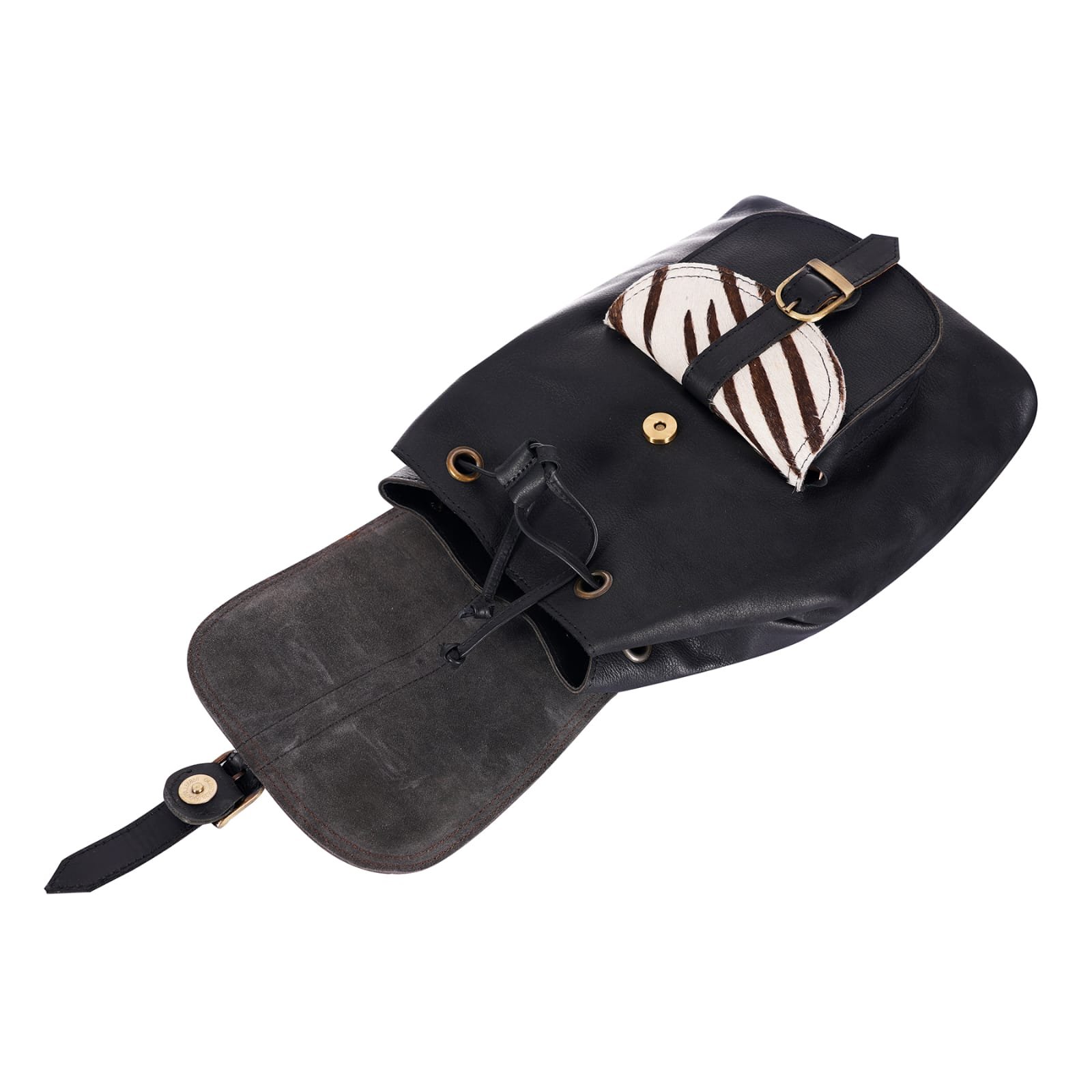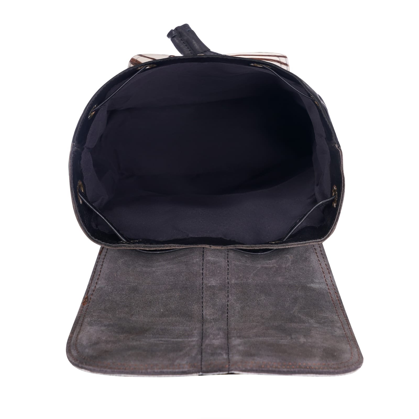 This compact yet spacious backpack is thoughtfully designed to carry your daily essentials with ease. The main compartment is secured with sturdy leather drawstrings beneath the flap, offering both style and functionality.